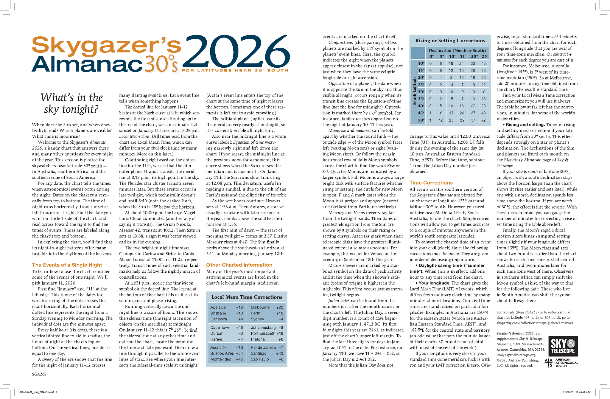 When can you start observing tonight? What time does the Moon rise? What planets will be visible in the night sky? Plan your stargazing sessions with the essential 2026 Skygazer's Almanac.